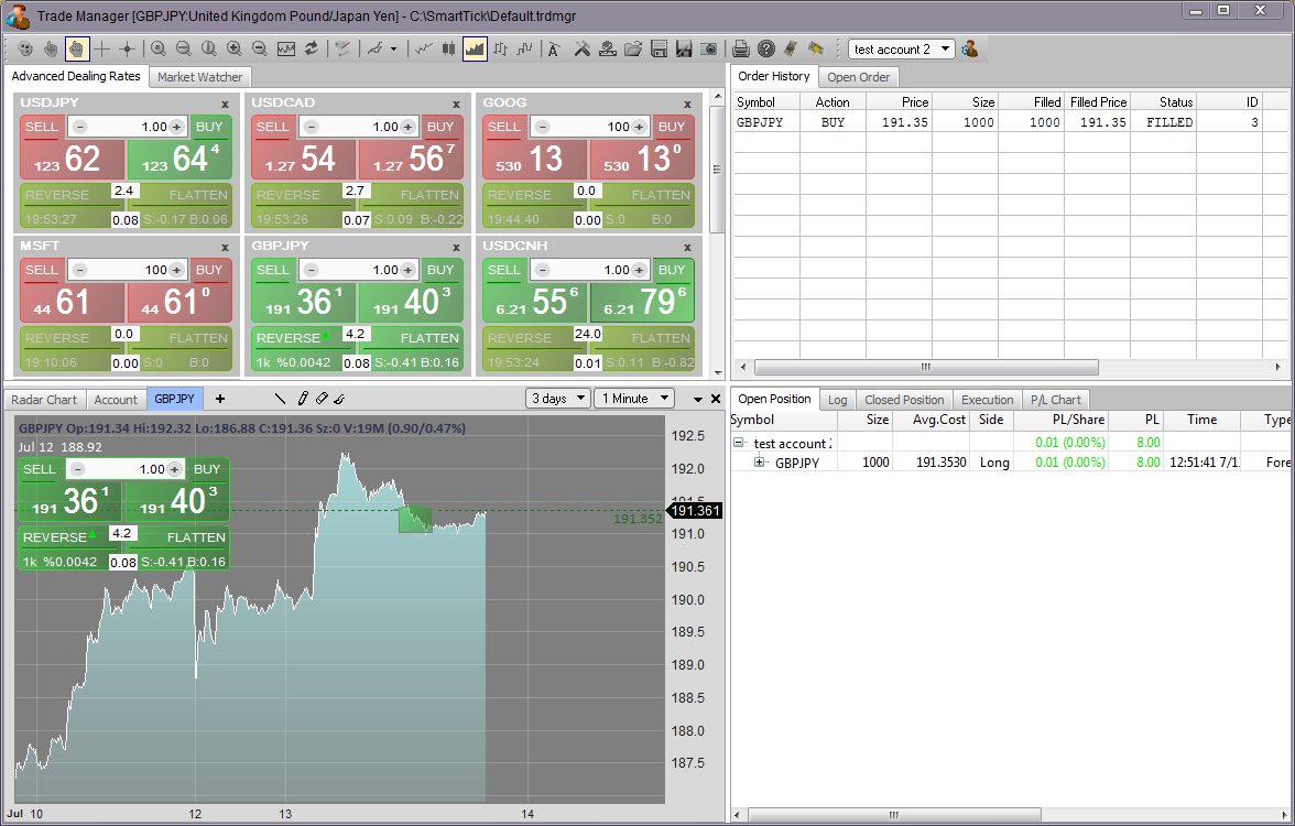 Besides pre-defined indicators and analysis tools, SmartTick users can customize and automate existing indicators and strategies with SmartTick Trading Script Language. Our development team also can analyse ,refine and automate trader’s own strategy by scripting and back-testing against our extensive historical data.Traders also can subscribe trading signals provided by our own development team or any third party developers. Trading Robot automatically copy trades for you from professional traders whom you are following no matter you are on line or off line.